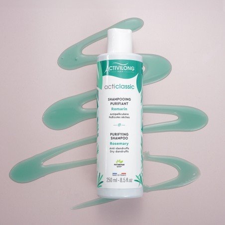 Le shampooing purifiant au  Romarin  de la marque  ACTIVILONG purifie les cuirs chevelus à tendance pelliculaire. Il apaise les démangeaisons et élimine les pellicules sèches.