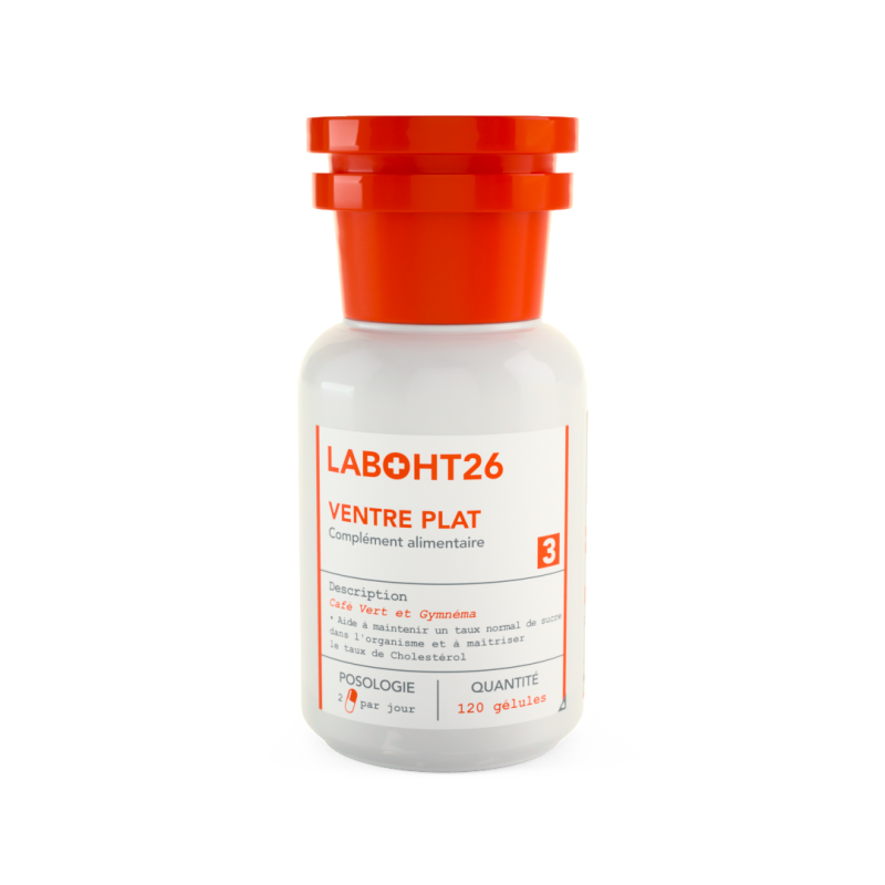 Le complément alimentaire Ventre Plat HT26 est spécialement formulé à base d’extraits de gymnéma et de café vert pour aider à réguler les sucres dans l’organisme et favoriser la combustion des graisses.